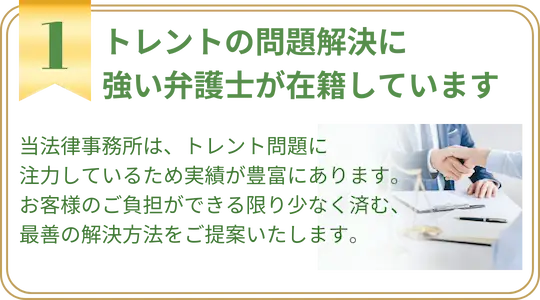 電話がつながりましたら、「トレントについて相談したいのですが?」など、相談したい内容をお伝えください。まずは相談することが解決の第一歩です。お気軽にご連絡ください。